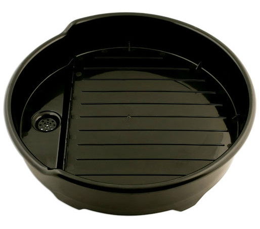 A serpenyő 550 mm átmérőjű és 105 mm mély, beépített szűrővel rendelkezik a szennyeződés megakadályozására, olaj- és vegyszerálló, nagy sűrűségű polietilénből készült.